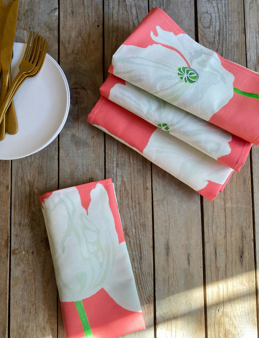 Napkin Set: White Poppies on Pink