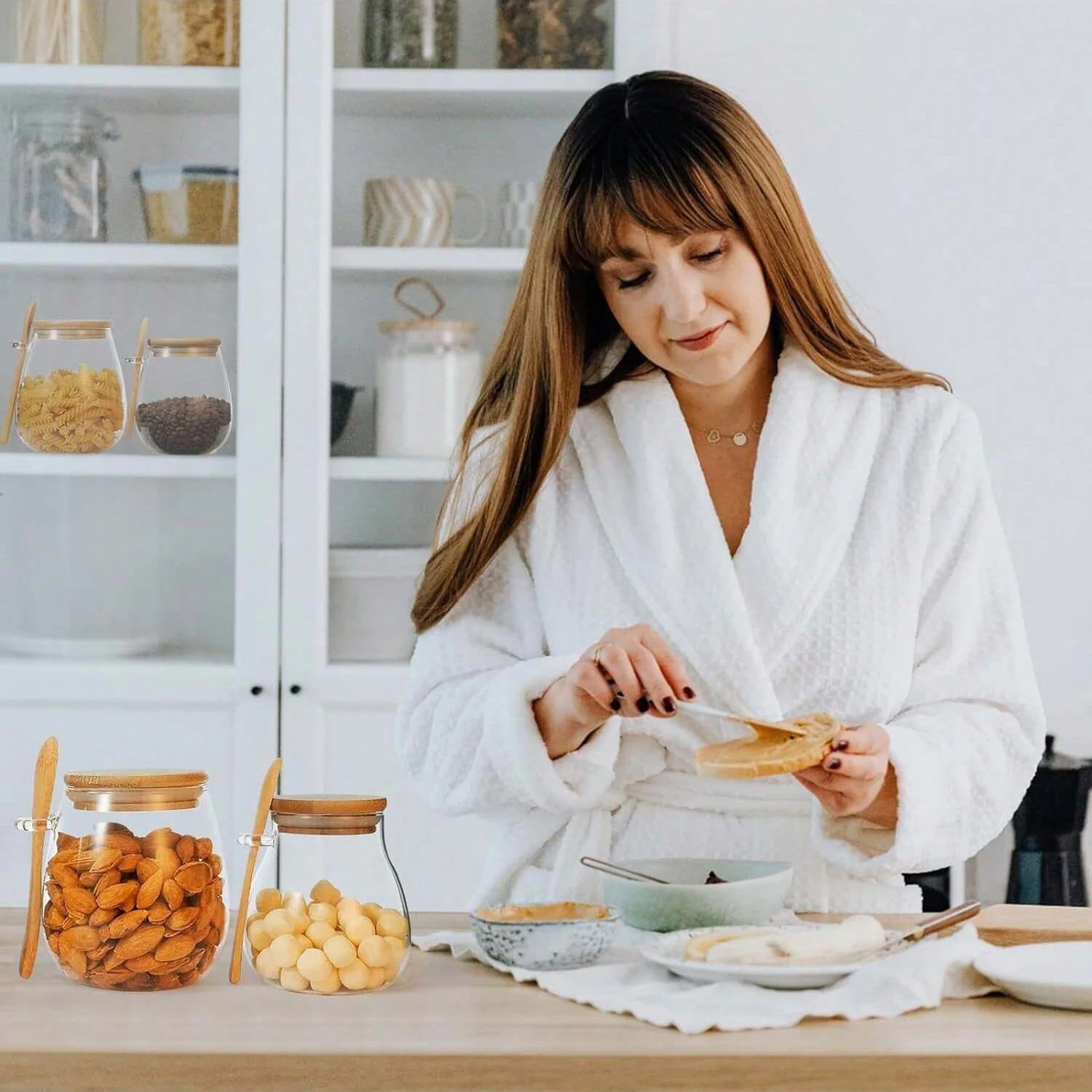 1. Glass Jar Set: Made of high-quality glass, these jars are durable and resistant to cracking. Equipped with natural bamboo material lid and spoon, practical and simple, adding a touch of elegance to your kitchen or pantry.