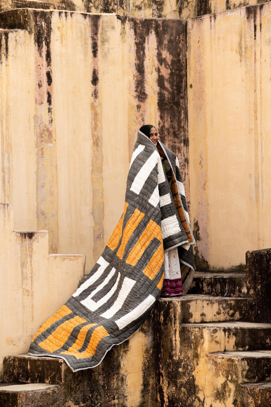 Each quilt is handmade, requiring attention from 4 different artisans, including quiltmakers, wood carvers, block printers, and dye specialists. The design is hand-pressed onto each quilt using hand-carved wooden blocks dipped in dyes. The printed cotton shells are brought to the homes of quiltmakers, who stuff and stitch the quilts by hand, creating the final product. Our quilts are made in small batches. Due to the handcrafted nature of this item, expect slight variations in the appearance of each unique piece. - 100% cotton voile exterior - 100% cotton stuffing - Made in India - Ships from California - Twin size: 68″ x 86″ - Queen size: 96″ x 96″ - King size: 108″ x 108″