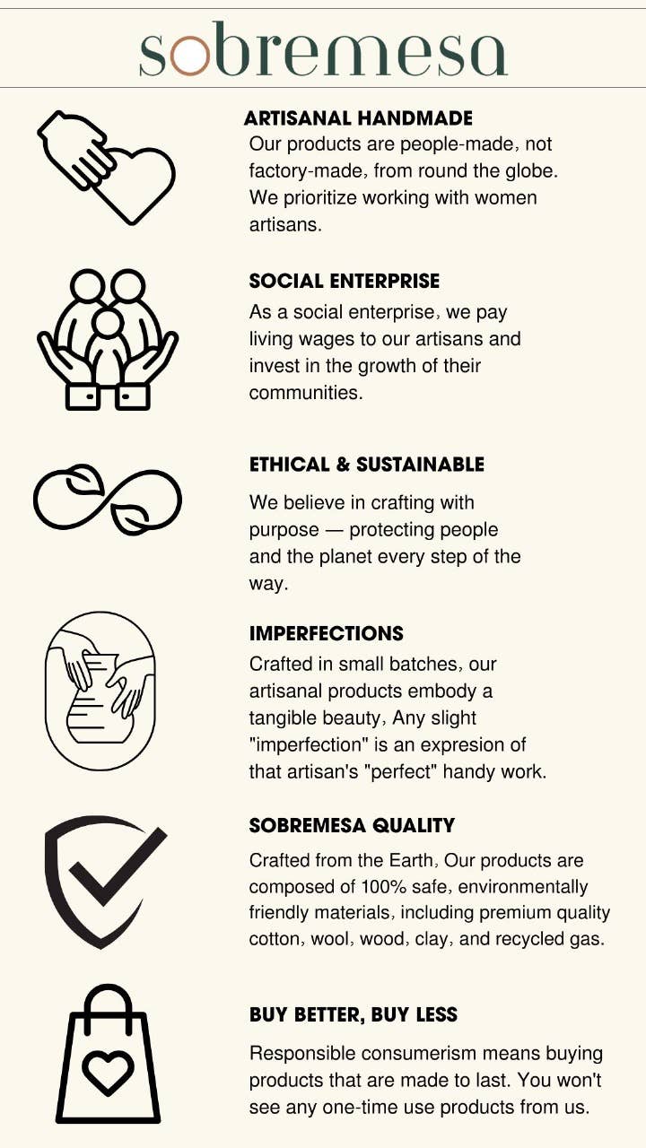 Size and color may vary due to the handmade nature of the product.