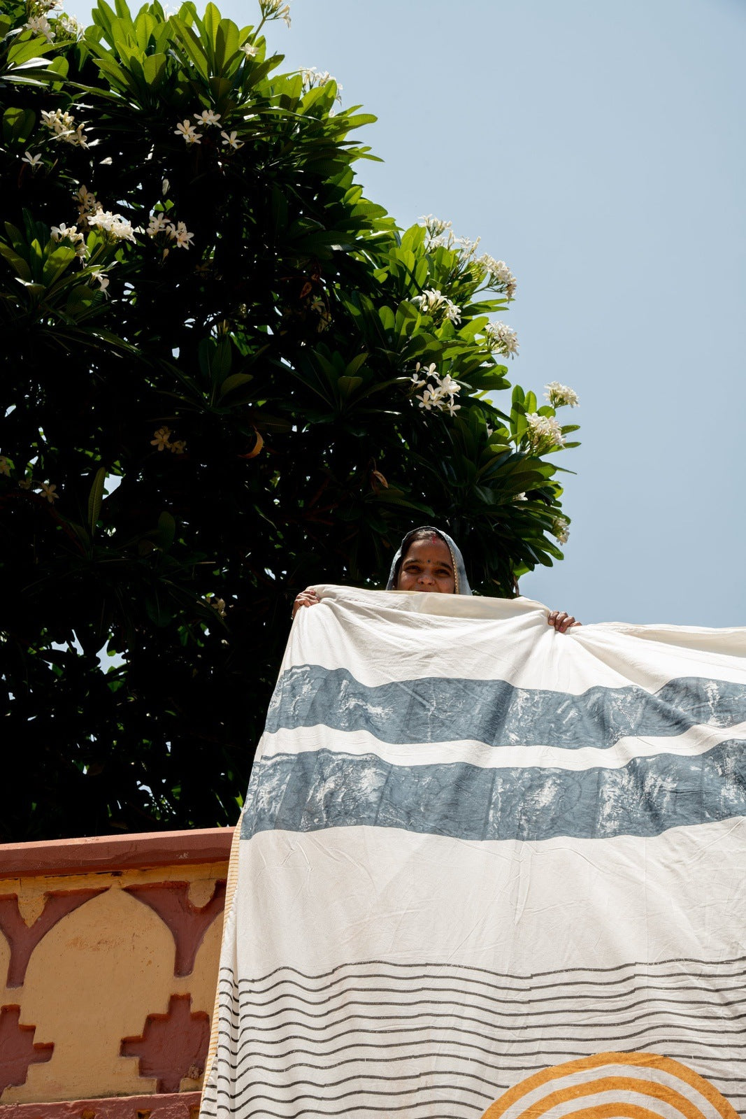 Each duvet cover is handmade, requiring attention from multiple artisans, including wood carvers, block printers, and dye specialists. The design is hand-pressed onto each duvet using hand-carved wooden blocks dipped in dyes. Our duvet covers are made in small batches. Due to the handcrafted nature of this item, expect slight variations in the appearance of each unique piece. - 100% Cotton - Button Closure - Reversible Design - Handmade in India - Ships from California - Queen Size: 92″ x 96″ | King Size: 96″ x 104″ | Shams Size: 26" x 26" - Machine wash on a gentle cycle and tumble dry or dry clean